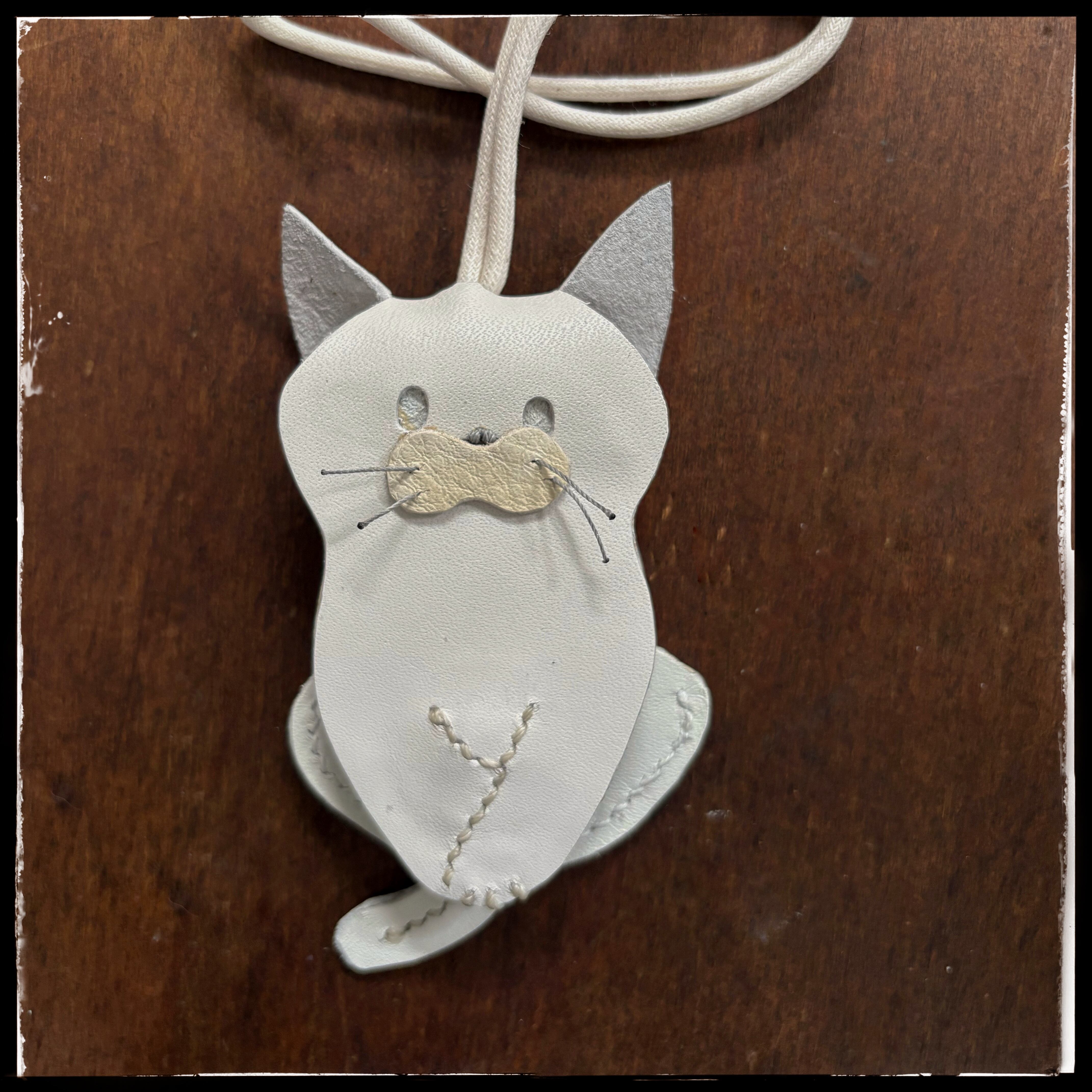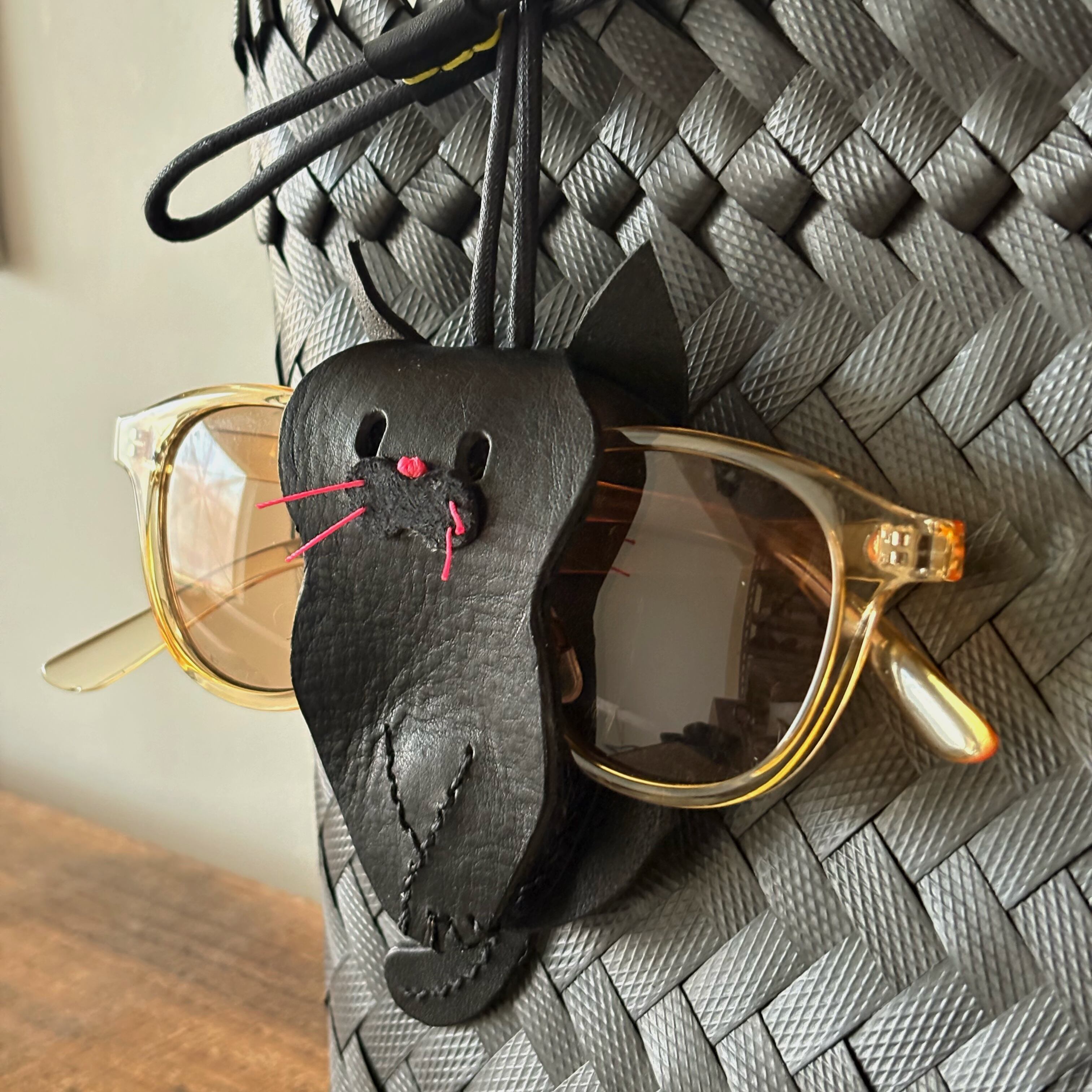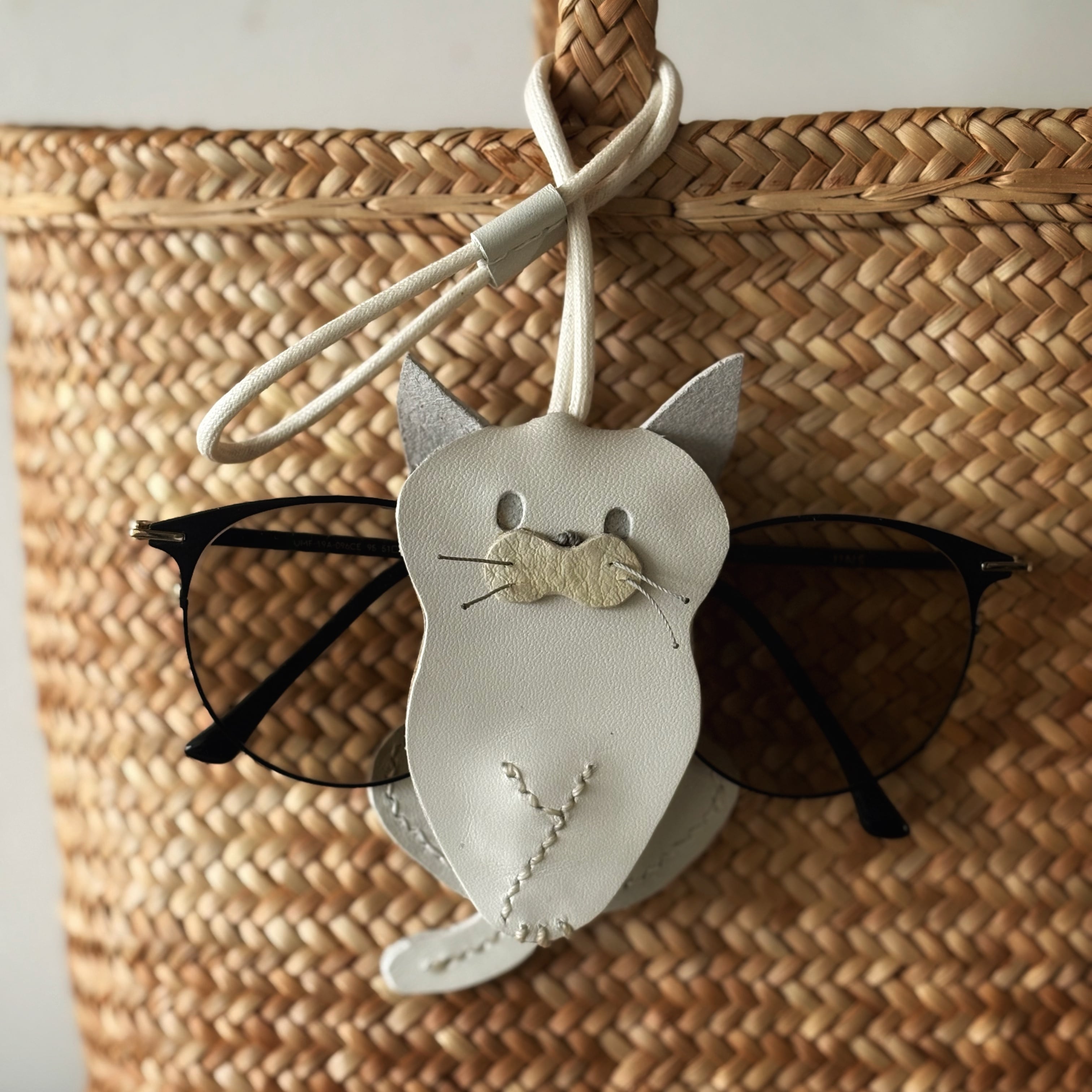 leather glasses holder/ cat